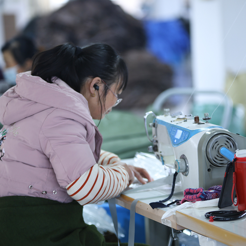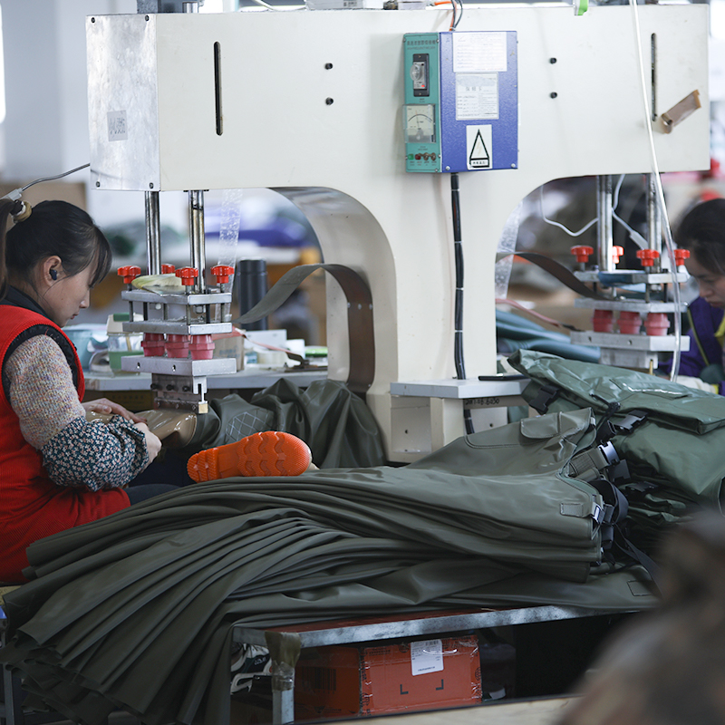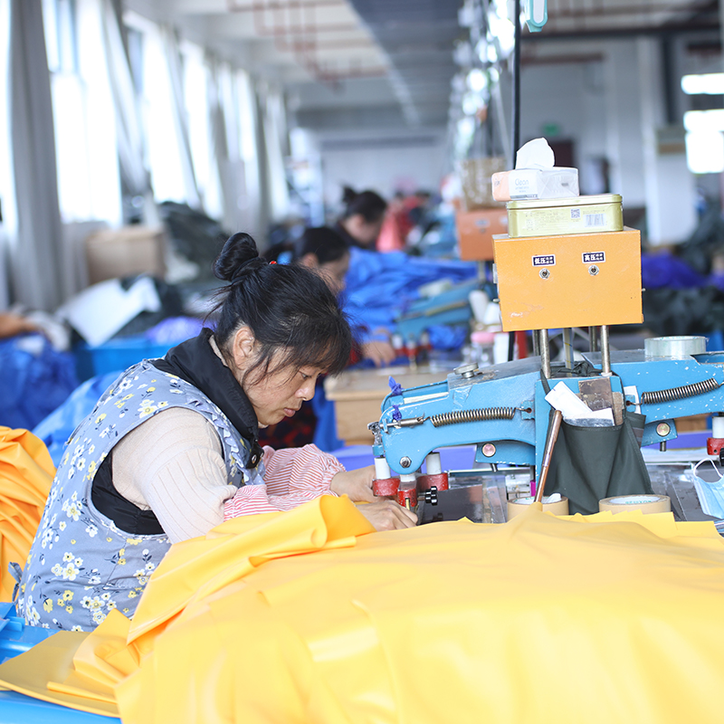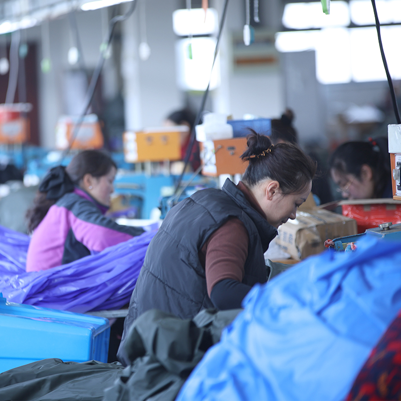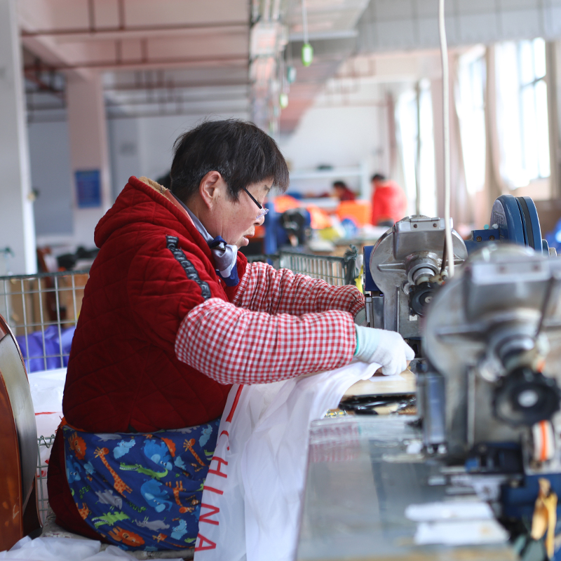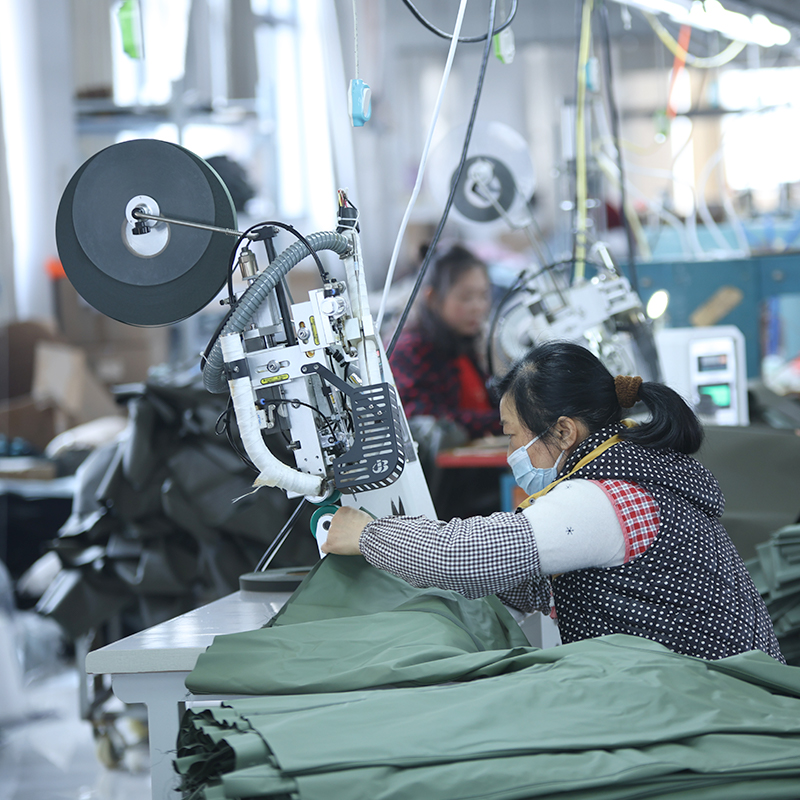 Obecnie istnieje 10 linii produkcyjnych, ponad 60 maszyn wysokiej częstotliwości, z których każda może pomieścić dwie osoby, ponad 20 maszyn do szycia i ponad 200 operatorów. Aby zapewnić wydajne i wysokiej jakości zakupy, mamy również 3 pracowników kontroli jakości i 5 pracowników działu badań i rozwoju.